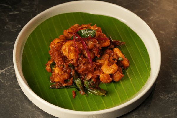 Baked Thai Prawn Cooked with Coconut Milk and BBQ Sauce Served with Mash